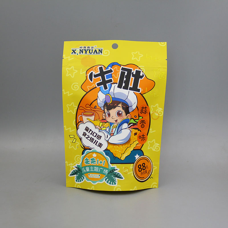 這是我們常見肉干類零食的包裝袋,由巨人紙塑包裝公司設計生產,雖然按照使用角度來說它只是名為“牛小排”的牛肉干包裝袋,但在我們紙塑包裝行業,它也可以稱為牛皮紙開窗袋、復合自立袋、自封包裝袋等等。
