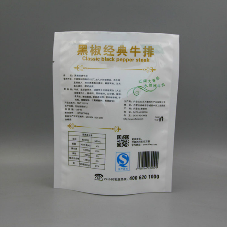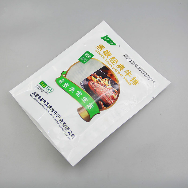 熟食包裝多需要進行高溫蒸煮,蒸煮袋多用三層材料復合而成,具有代表性的蒸煮袋結構是:外層為聚酯膜,作加強用;中層為鋁箔,作防光、防濕和防漏氣用;內層為聚烯烴膜(如聚丙烯膜),作熱合和接觸食品用。