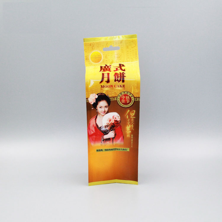 本產品為亮面塑料復合四邊封 包裝袋 ,塑料包裝保持月餅風味與品質,防止月餅氧化變質。四邊封每條邊都經過均勻的熱封,成袋后的產品密封性較好。巨人包裝選擇環保油墨,復合